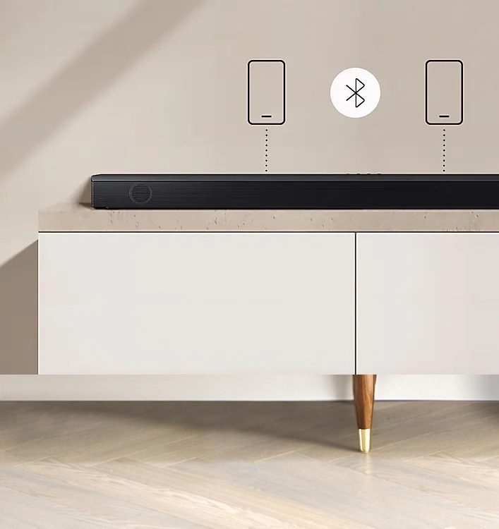 نوار خطی و سابووفر در ساندبار 300 وات سامسونگ C450، چیدمان و نوع قرار گرفتن روی میز تی وی همراه با تلویزیون را بر عهدهی کاربر گذاشتهاست.